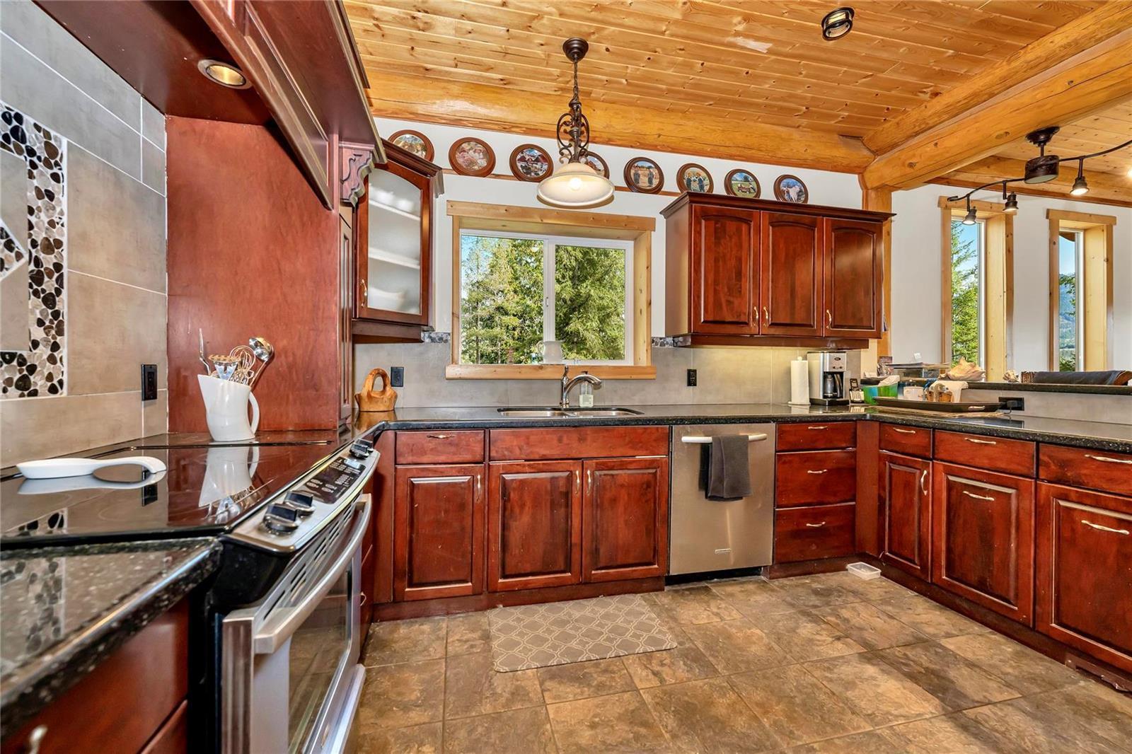 | description: | First Time offered on the market! Custom built Log Home with amazing Valley and Shuswap River views on almost 16 acres with large 30'x48' heated shop. Main floor offers an open concept with spacious living room and vaulted ceilings, gas fireplace, infloor H/W heat, chef's kitchen with beautiful Maple cabinetry, over/under lighting, tiled backsplash, quartz counter tops, stainless steel appliances, hardwood floors, powder room, primary bedroom with walk in closet and full ensuite bathroom + large south facing stamped concrete deck opening to 180 views. Upper floor family room with pool table, full bar, sitting area, 4 pcs bathroom along with two spacious bedrooms. The walkout daylight basement with separate entrance is equipped with summer kitchen, rec room, bedroom and full bath. Possibility to add more finished sqft and another bedroom! Lots of room for all your toys, RV parking, Chicken coup, sheds, tree houses, fenced garden, access to trails and much more! Replacement cost $1.6M! |